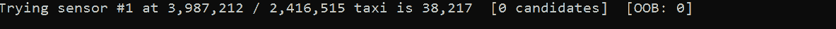 Trying sensor #21 at 3,505,508 / 2,805,537 taxi is 532,165 [4,300,000 candidates] [OOB: 1,865,312]