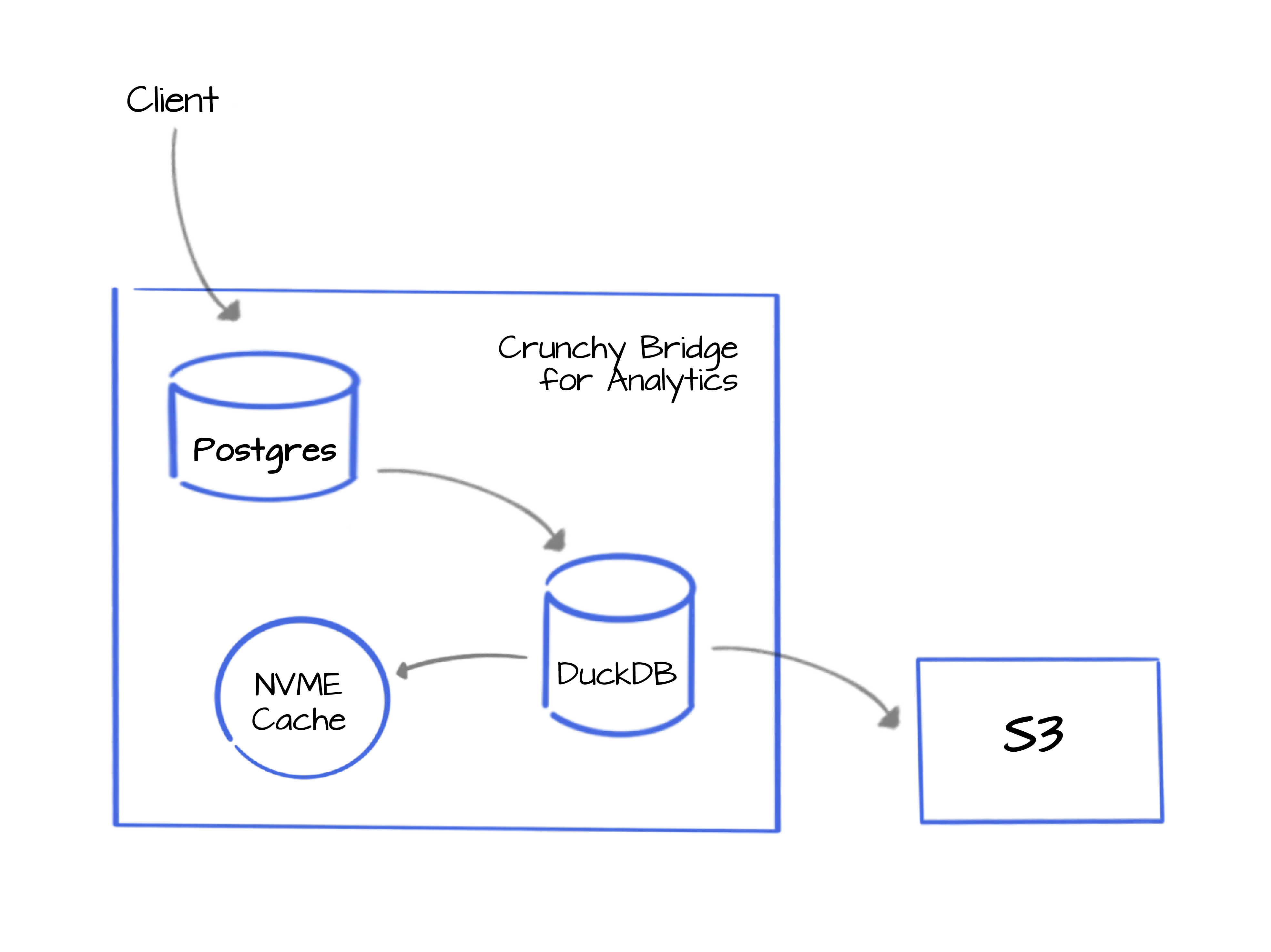 Postgres is renowned for its rock-solid performance, extensive feature set, and proven track record in managing large-scale transactional databases. On the other hand, DuckDB pioneered vectorized execution and as a query engine excels at analytical workloads. By seamlessly integrating DuckDB as a query engine to Crunchy Bridge's Postgres Platform, we provide you with one of the fastest OLAP tools available with the familiarity of a native Postgres experience.
